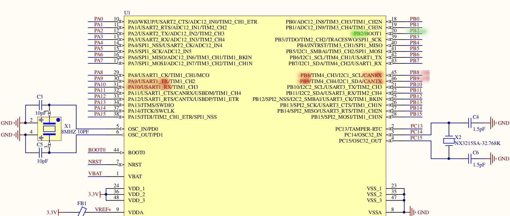 - CAN1_RX: Port B8